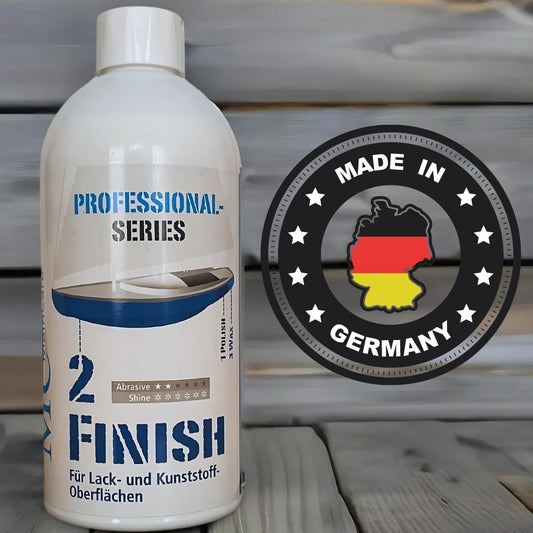 Nachdem die Oberfläche vorbereitet wurde, sorgt unser FINISH-2 für eine makellose Glätte. Es versiegelt die zuvor polierte Oberfläche, verstärkt den Glanz und sorgt für eine zusätzliche Schutzschicht gegen Umwelteinflüsse.